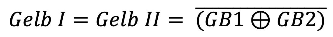 Het is op verschillende manieren mogelijk om met een samenstelling van OR/NOR en/of AND/NAND Silberlingen een XOR poort te maken. Dit kan met vijf OR/NOR Silberlingen of vier AND/NAND Silberlingen. Omdat alle Silberlingen zowel de normale digitale uitgang, als de geïnverteerde variant hiervan bieden is het zelfs mogelijk om met slechts drie Silberlingen de XOR poort op te bouwen zoals is aangegeven in de figuur hierboven. In de praktijk heeft de opbouw van de decoder met vier AND-Silberlingen echter de voorkeur omdat bij deze opbouw op de uitgangen van resp. de 2e en de 3e AND-poort reeds de stuursignalen voor de twee groene lampen beschikbaar zijn. De stuursignalen voor de rode lampen kunnen direct worden afgenomen op de uitgangen van GB2. Dit stuursignaal wordt via een 1MΩ weerstand afgenomen om de terugkoppeling naar GB1 zo min mogelijk belasten.