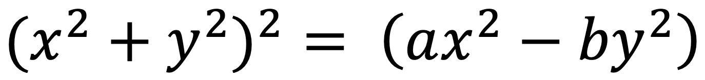 waarbij de factoren a>0 en b>0. Naarmate deze factoren verder uiteen gekozen worden, zal de lemniscaat in plaats van uitgerekte elipsen uit steeds zuiverdere cirkels bestaan. In de handige online visualisatie-tool GeoGebra laat zich dat mooi visualiseren. Voor de rode curve zijn dezelfde factoren als globale schaalfactor gebruikt en geldt de formule:
